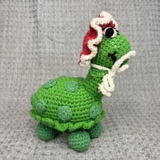 Handmade Crochet Turtle Vintage Stuffed Toy Plush Red Bonnet 8.5" tall 7" long