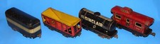 4 Vintage Unmarked Tin Toy Train Cars - Coal New York Central Sinclair Caboose
