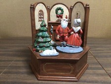 Vintage Scioto Mold Ceramic Music Box Dancing Santa & Mrs Clause Christmas