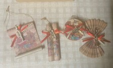 4 Vintage Music Paper Bear Themed Christmas Holiday Ornaments Gift Box & Scrolls