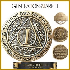 1 Year AA Medallion Reflex Antique Chocolate Bronze Sobriety Chip Coin