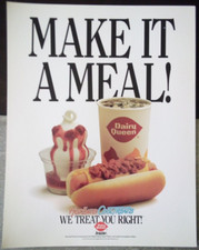 VTG 1993 DAIRY QUEEN ADVERTISING CARDBOARD POSTER SIGN MAKE IT A MEAL ICE CREAM