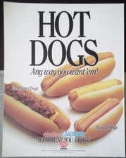 VTG 1993 DAIRY QUEEN ADVERTISING CARDBOARD POSTER SIGN HOT DOGS HOT EATS v