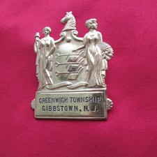 Antique Obsolete GREENWICH Township, GIBBSTOWN, NJ Large Gold Police Hat Badge