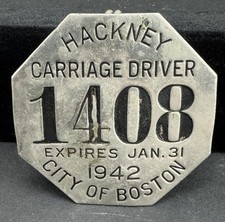 Antique Obsolete Hackney Carriage Driver Badge Boston Massachusetts 1942 # 1408