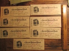 12 Antique Checks 1899 The Peoples National Bank -All Paid Antique Stamps
