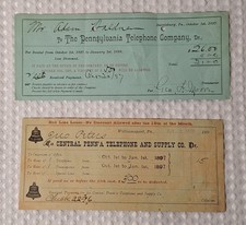 Vintage Antique 1897 1898 Pennsylvania Telephone Co Check Billhead Receipt 1800s