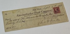 New York Knickerbocker Trust Company Antique Bank Check 1898 Waverly Bicycle CO.