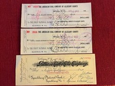 Lot of 3 Old Checks COAL & COKE COMPANIES West Virginia 1922 & 1927
