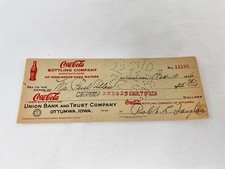 Vintage 1936 Coca Cola Bank Check Ottumwa, Iowa