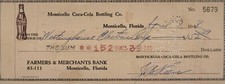 Coca Cola Bottling Co. Monticello, FL 1963 Bank Check w/ Bottle / Fishtail Logo