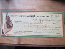 1936 coca cola check from mt vernon ohio