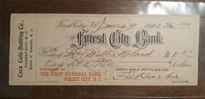 1910 Canceled Check Forest City North Carolina Coca-Cola Bottling Co.