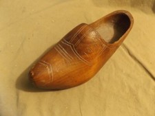 Primitive Old Single Hand Carved Wood Dutch Clog Antique Wooden Shoe 11" Long