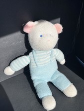 EDEN Vintage Knit Blue Bear Mouse Plush Toy Animal RARE HTF Pilly Tag Faded