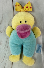 Vintage Eden Yellow Pastel Teal Duck Rattle Plush Baby Toy Lovey Polka Dot Bow