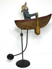 Vintage Balancing Pendulum Toy Metal Man in A Row Boat Canoe Folk Art Americana