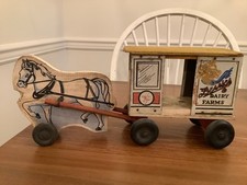 Bessie’s Dairy Farms Horse And Wagon Wooden Pull Toy Cass Toys RARE. C5