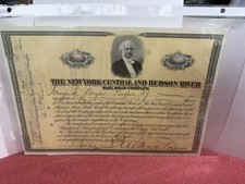 antique 1909 stock certificate The New York central and Hudson River Railroad co