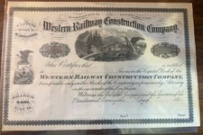 Antique 1800s Western Railway Construction Company Stock Certificate