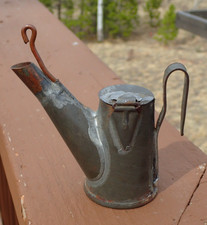 Antique Coal Miner’s Tin Teapot Flip Top Lamp Camp Light with full wick Vintage