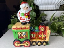 Vintage Santa Christmas Train Music Box Spinning Santa Mechanical Holiday Figure