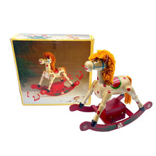 Vintage Wooden Rocking Horse Music Box Plays Jingle Bells Christmas w/Box,Taiwan