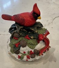 Vintage Christmas Cardinal Fresco Poinsettia Turning Music Box Jingle Bells Vide