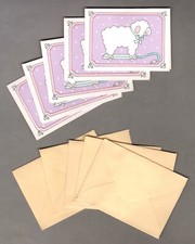 Set of 5 Lamb Pull Toy Gift Card/Tags, Baby Shower, Sheep, Lavender, 2.75" Vtg