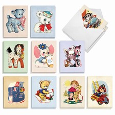 20 Assorted Birthday Notecards w/ Envelopes (10 Designs, 2 Each) Vintage Plush