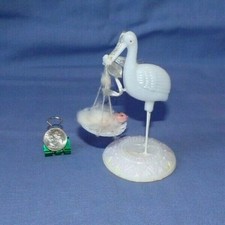 Miniature Baby Shower Cake Topper Decoration Figurine Stork Swinging Baby VTG 4"