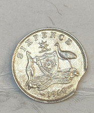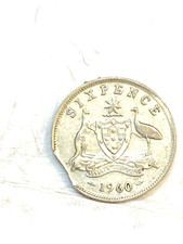 1960 Australia silver 6d Sixpence ERROR CLIPPED planchet.