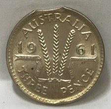 AUSTRALIA 1961 THREEPENCE . ERROR . CLIPPED PLANCHET