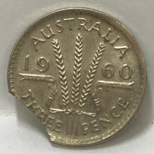 AUSTRALIA 1960 THREEPENCE . ERROR . CLIPPED PLANCHET . SCARCE