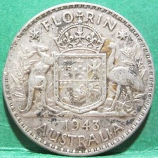 1943 Australia 2/- Two Shillings Florin ** ERROR Clipped Planchet ** #MH2302-20