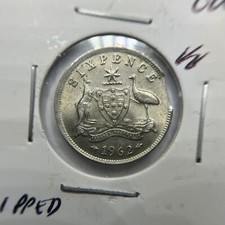 AUSTRALIA 1962 SIXPENCE " ERROR CLIPPED PLANCHET SLIGHTLY OFF CENTER" SCARCE