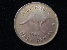Australia 1961 Half Penny Clipped Error Coin High Grade Rainbow Luster