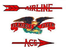 FLEXIBLE FLYER DECAL WATER SLIDE 4 STREERING ARMS LARGE AND SMALL SIZE ON SHEET