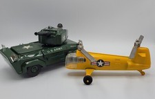Vintage Toy Hubley Helicopter, USA and Tin Navy Combat Radar Cannon Tank, Japan