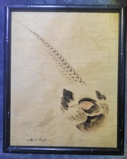 Old Vintage Chinese / Japanese Silk Pheasant Bird Painting Signed S.C. Hung