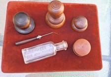 Antique Wood & Agate Watchmaker's Oil Pot, France, Watchmaker's Tool See Pics