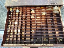 Antique Watchmaker's 4 Drawer Storage Wood Cabinet w/ NOS Glass Watch Crystals