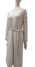 70s Knit White Pearl Dress L Bombshell Peek Boo Psychedelic Mid Century Modern