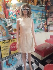 VTG Mid-century 1960s / 1970s Mod Crochet Sleeveless Mini Dress Groovy Ivory S