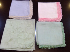 Lot of 4 Vintage mid-century Ladies 6" Handkerchiefs - lace trimmed & appliqued