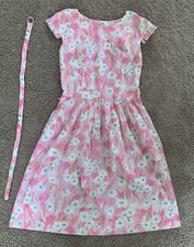 VINTAGE CAROL BRENT/PARTY/MID CENTURY PINK FLORAL DAY DRESS-W/Belt-30" Chest