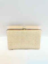 Vintage Faux Pearl Clutch Bag Purse Gold Tone Frame Mid Century MCM