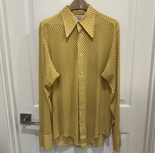 Vintage 60s ENRO Trico Jones Mod Shirt Yellow Geometric Long Sleeve Mid Century