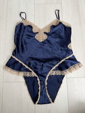 Vintage Delicates Lingerie Teddy Sz M Blue Satin Lace Flutter Side