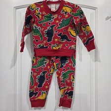 Vintage Teddy Bears Pajamas Set Toddler 3 Red Dinosaur Print Made in USA 80s